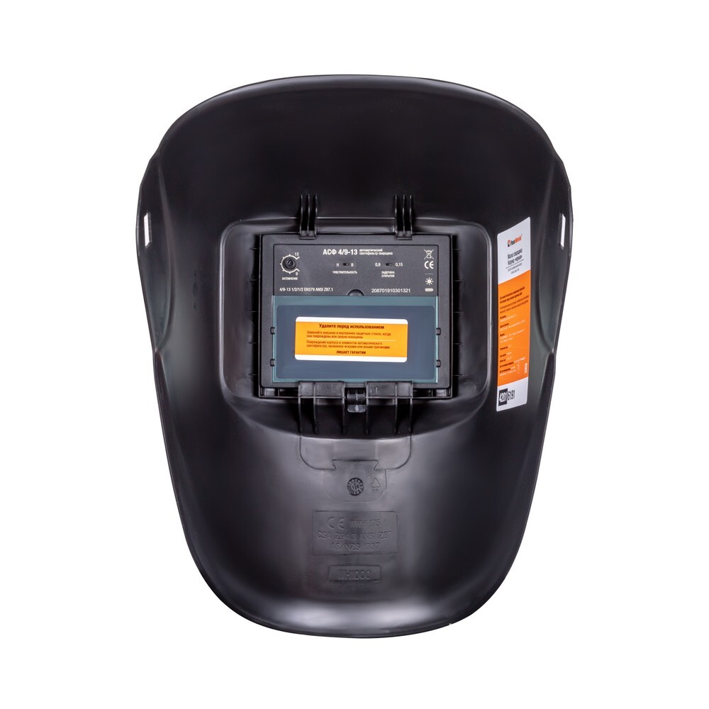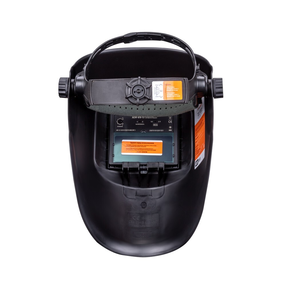 Сварочная маска FOXWELD КОРУНД "черная" выполнена из ударопрочного негорючего пластика и укомплектована автоматическим светофильтром 4/9 - 13. Автоматический светофильтр защищает глаза сварщика от открытого излучения дуги и позволяет видеть область сварки перед поджигом дуги, не требует поднятия или опускания сварочной маски, высвобождая таким образом руки сварщика, а также исключает случайное облучение и обеспечивает более точную сварку. Максимальная постоянная защита от невидимого УФ/ИК излучения дуги в 16 DIN гарантирует защиту органов зрения даже при вышедшей из строя управляющей электронике или разряженных элементов питания (зеркальный защитный слой).АДАПТИВНАЯ РЕГУЛИРОВКА ОГОЛОВЬЯМаска оснащена удобным оголовьем c мягкой налобной накладкой и большим количеством регулировок: изменение по высоте, диаметру (реечный механизм), установка расстояния от глаз до светофильтра, угол опускания маски, фиксация в произвольном положении боковыми «барашками», быстрые регулировки.ВЫСОКОКАЧЕСТВЕННЫЙ ПЛАСТИКМаска выполнена из лёгкого, эластичного и ударопрочного материала - пластика, негорючего и стойкого к излучению сварочной дуги. Пластик корпуса защищает маску даже при ударе из-за падения со сварочного стола.ЗАЩИТА ОТ УФ/ИК ИЗЛУЧЕНИЯМаксимальная постоянная защита от невидимого УФ/ИК излучения дуги гарантирует защиту органов зрения даже при вышедшей из строя управляющей электроники или разряженных элементов питания за счёт зеркального защитного слоя. 2 независимых фотодатчика мгновенно срабатывают при возникновении сварочной дуги и поддерживают закрытое состояние, даже если один из датчиков перекрывается каким-либо препятствием. Повышенная чувствительность сенсоров дает исключительную стабильность обнаружения дуги.КОМБИНИРОВАННОЕ ПИТАНИЕОсновное питание управляющей электроники светофильтра осуществляется солнечной батареей от света сварочной дуги, а дополнительный аккумулятор внутри светофильтра обеспечивает вспомогательное питание при начале сварки.ПРЕИМУЩЕСТВА:Оптимальный размер смотрового окна. Максимум комфорта и безопасности при работе, позволяет хорошо видеть не только область сварки, но и окружающее пространство2 независимых фотодатчика мгновенно срабатывают при возникновении сварочной дуги и поддерживают закрытое состояние, даже если один из датчиков перекрывается каким-либо препятствием. Повышенная чувствительность сенсоров дает исключительную стабильность обнаружения дуги4 вида регулировок оголовья: изменение по высоте, диаметра (реечный механизм), установка расстояния от глаз до светофильтра (3 позиции), угол опускания маски (5 позиций), фиксация в произвольном положении боковыми «барашками», мягкая налобная накладкаМаксимальная постоянная защита от невидимого УФ/ИК до DIN 16 излучения дуги, гарантирует защиту органов зрения даже при вышедшей из строя управляющей электроники/разряженных элементов питания (зеркальный защитный слой)Лёгкий и прочный материал маски, негорючий и стойкий к излучению сварочной дугиМаска соответствует современным стандартам качества DIN, ISO, EN379, оптическому классу 1 /2/1 /2 и стандартам ANSI Z 87.1