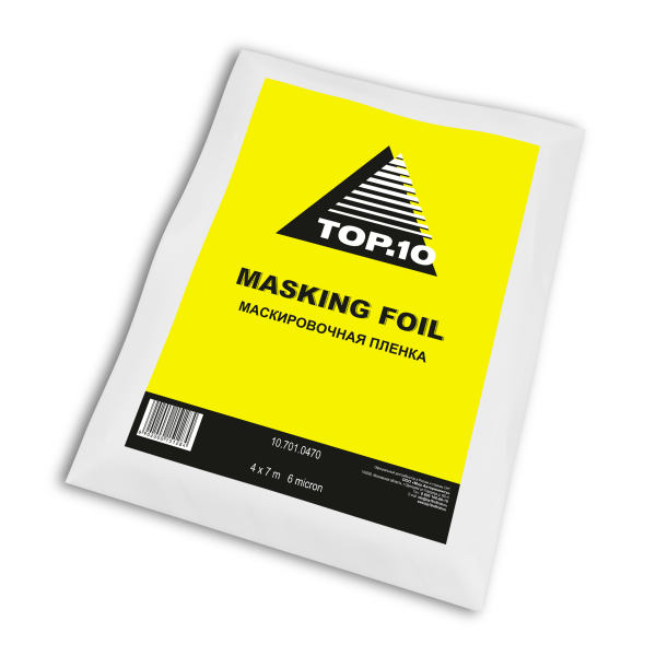 Плёнка из полиэтилена высокой плотности TOP.10 для маскировки отдельных деталей или всего автомобиля в процессе ремонта и окраски. Может также применяться в хозяйстве и бытовых целях, например, для защиты стен при окраске помещений.