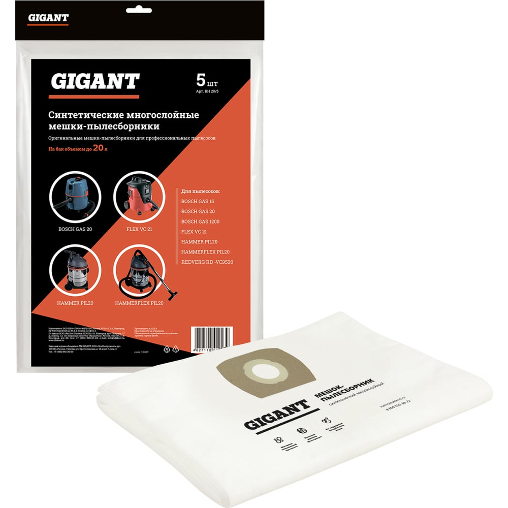 Мешки для профес.пылесососов 5 шт., синтетические Gigant G-BH-20/5