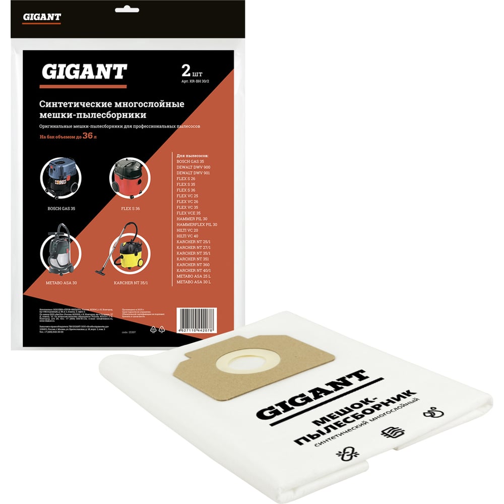 Мешки для пылесоса 2 шт. (до 36 л) Gigant KR-BH 30/2 KR-BH30/2 (Россия)