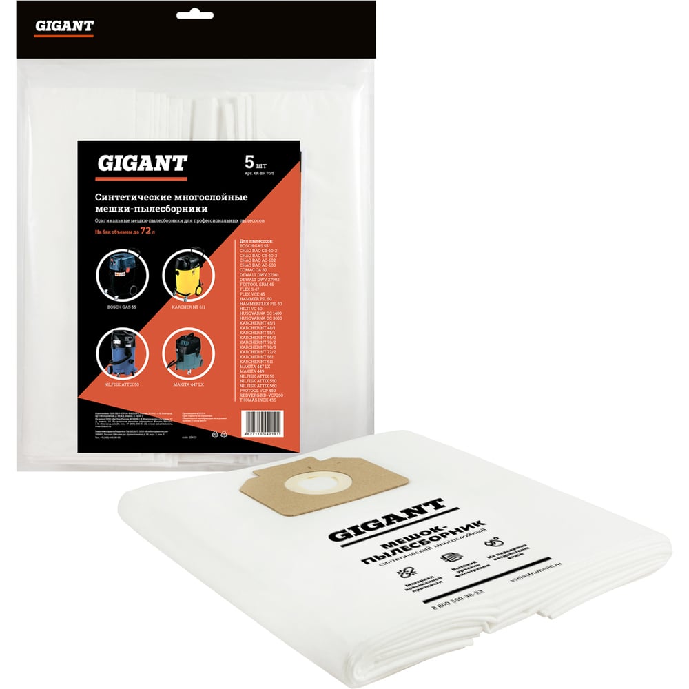 Мешки для пылесоса 5 шт., синтетические до 72 литров Gigant G-KR-BH-70/5