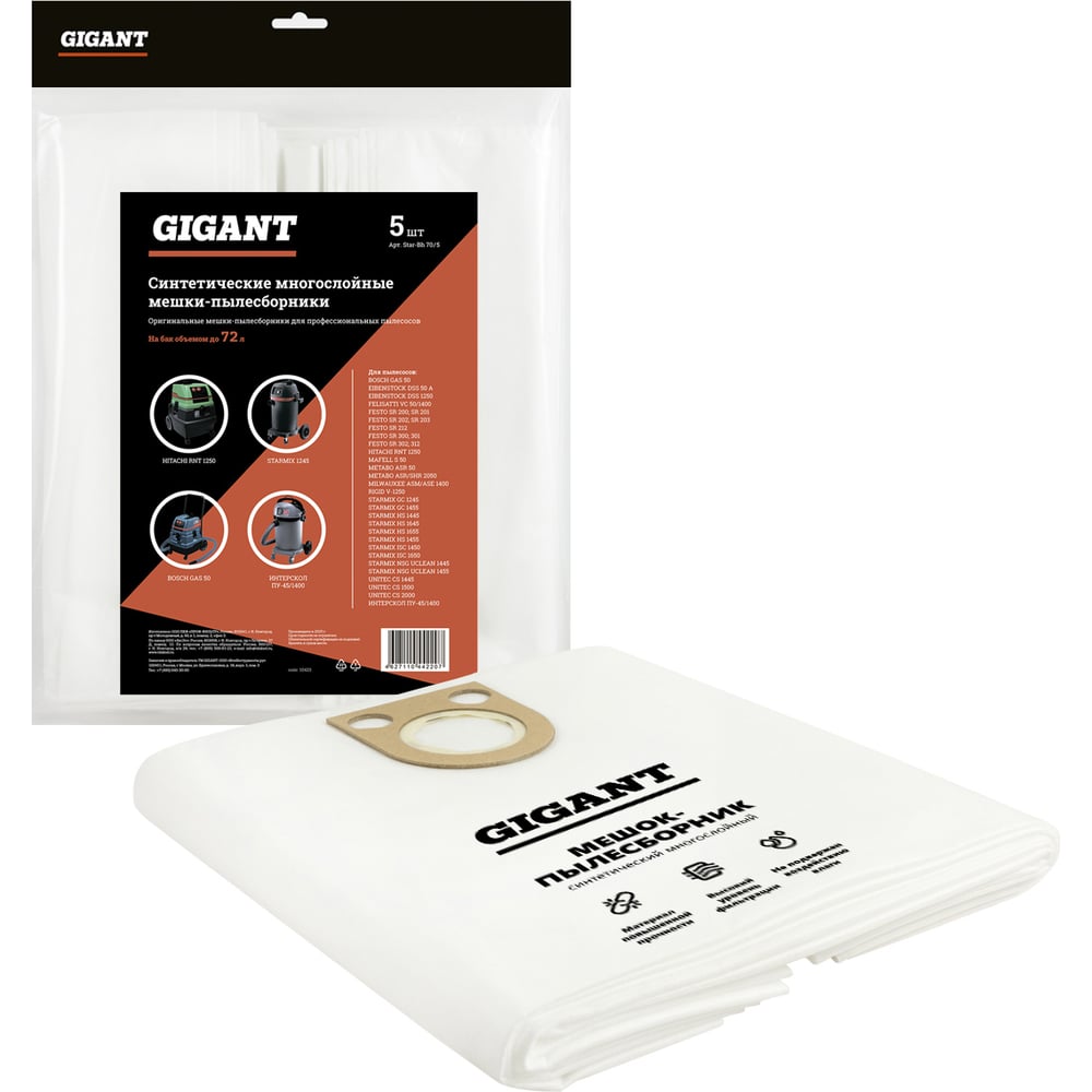 Мешки для пылесоса 5 шт., синтетические до 72 литров Gigant G-Star-Bh-70/5