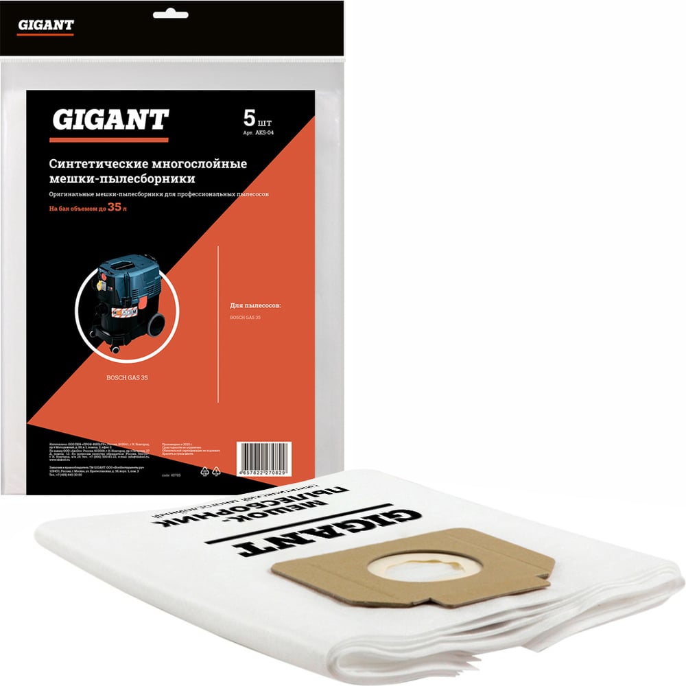 Мешки пылесборники синтетические для профессиональных пылесосов до 25 л, 5 шт Gigant AKS-04