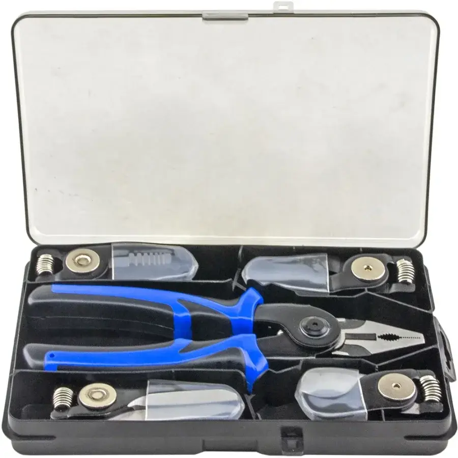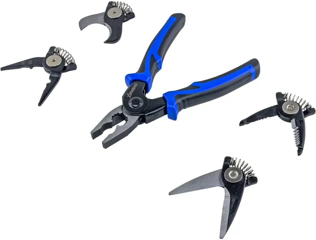 - Универсальный многофункциональный набор плоскогубцев с 5 сменными насадками ZR-P070001 применяется для ремонта автомобилей и техники, а также при проведении слесарных, монтажных, электромонтажных и других работ в квартире, на даче, в мастерской и т.д.