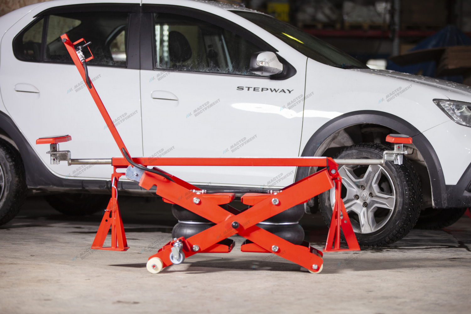Подкатной пневмоподъемник ножничного типа, за счет своих габаритов и мобильности, позволяет поднимать автомобили в небольших помещениях с низкими потолками, и даже на улице. За счет поднятия передней или задней части автомобиля появляется доступ к днищу. Данным подъемником активно пользуются кузовные цеха и детейлинг-центры. Данная модификация подъемника покрыта специальным покрасочным составом,что позволяет использовать его в сферах автомойки.