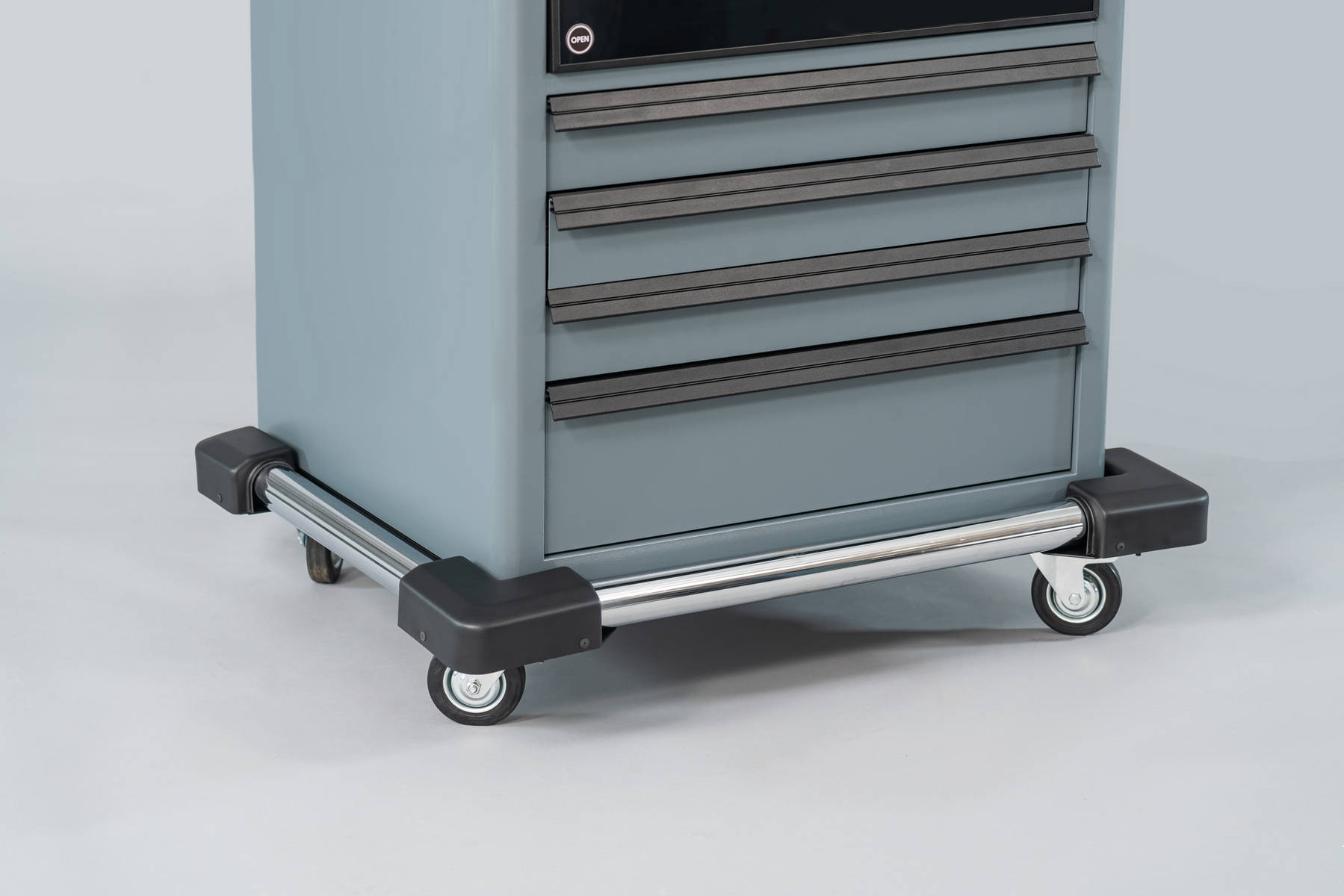 - Позволяет освободить рабочее место перемещением стенда на место хранения