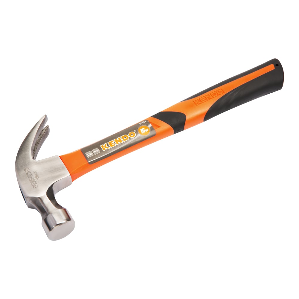 Молоток-гвоздодёр KENDO 450 г 25104 — ударный инструмент, применяемый для работ в столярных мастерских и в бытовых условиях. Он отличается высокой прочностью, так как головка изготовлена из кованной углеродистой стали. С одной ее стороны расположена плоская круглая ударная часть, а с другой — гвоздодер. В качестве материала ручки использован фиберглас, благодаря которому создается удобный хват, препятствующий скольжению руки и смягчающий удары.