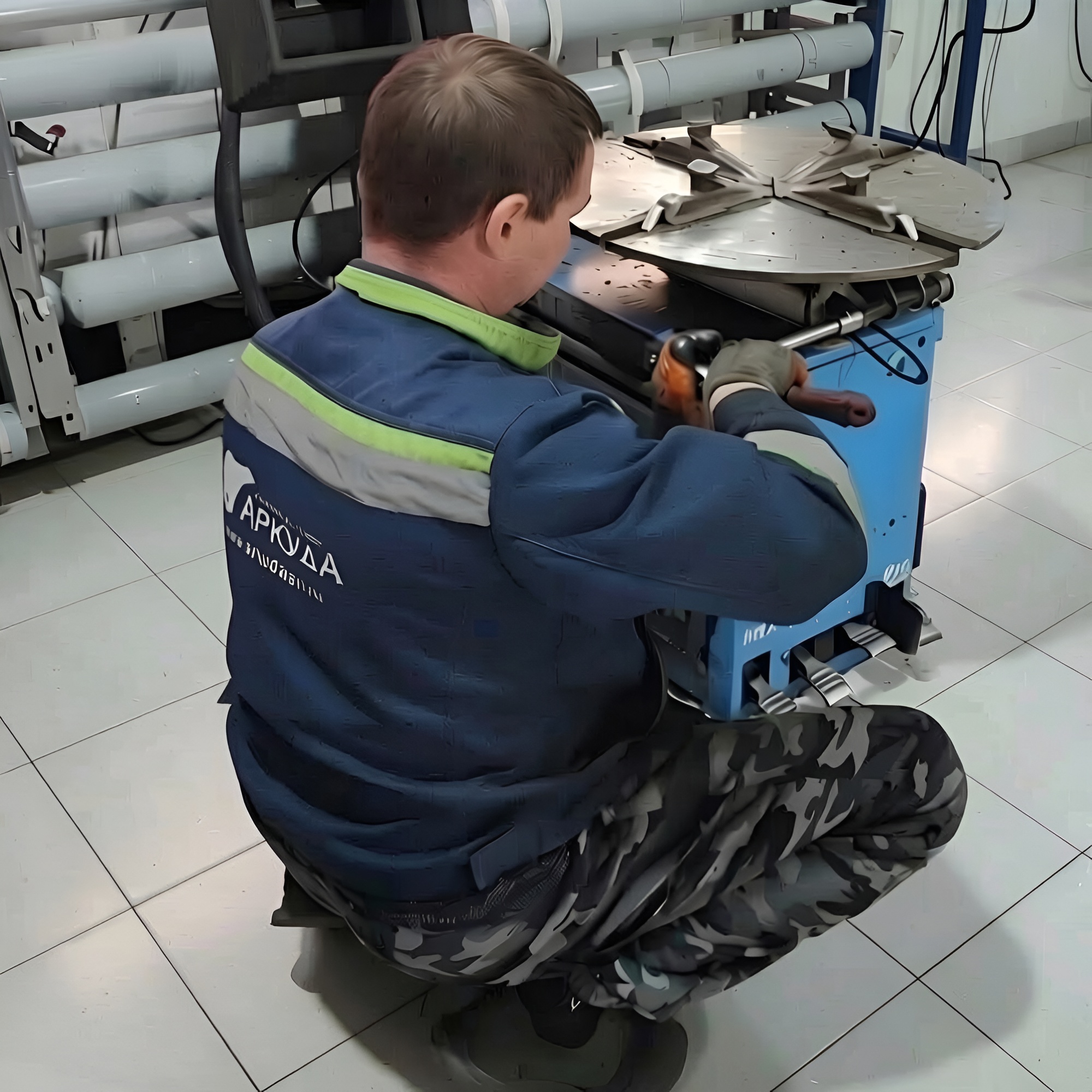 - Первичная проверка: Включите станок и проверьте работу всех основных функций: вращение стола, движение монтажной головки, работу пневматических цилиндров.