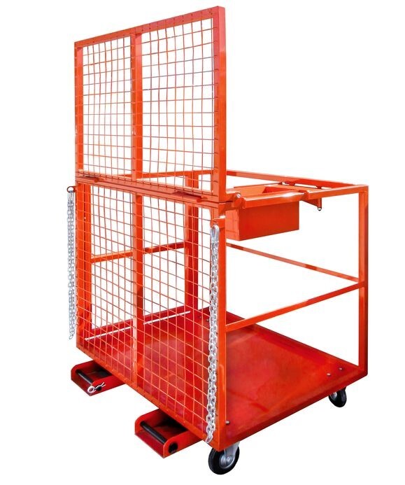 Модель : 101Грузоподъёмность, кг : 300Количество мест : 2 человека Собственный вес , кг : 100Общая длина, мм : 1000Общая ширина, мм : 800Общая высота, мм : 1200Калитка : естьЗащитная сетка : естьСтраховка крепления к вилам погрузчика : естьРазмер опорных колес, мм : 160х25