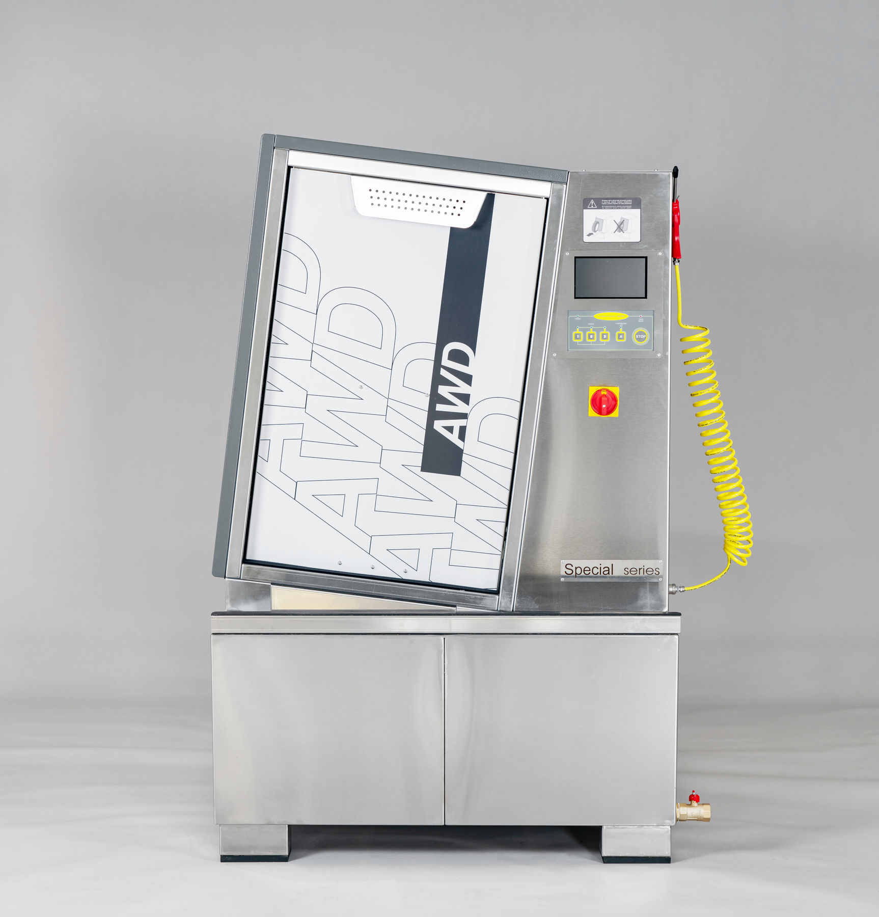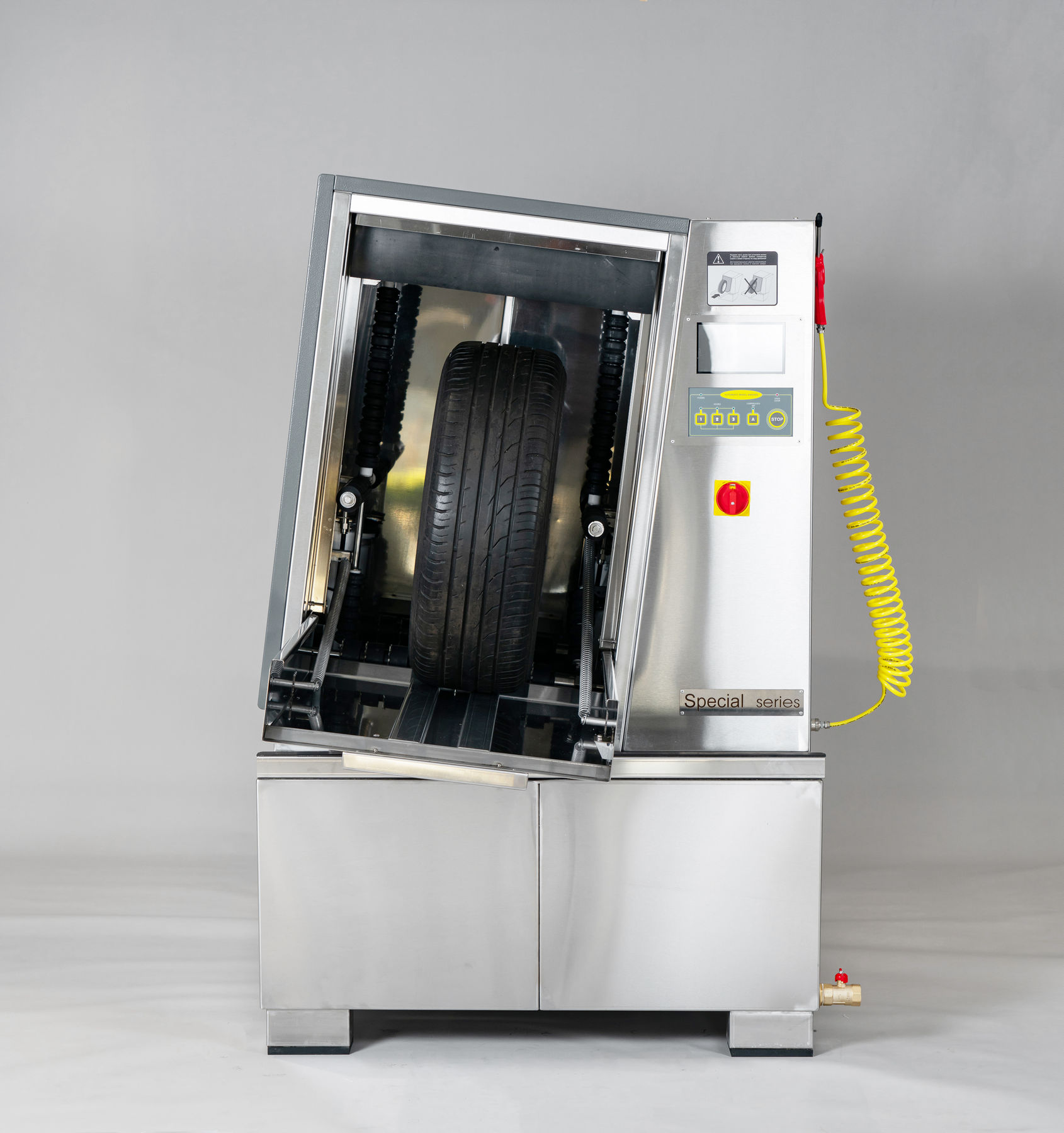 Мойка колес происходит по замкнутому циклу, грязь осаждается на дно ванны. Мойка не требует подключения к водопроводу и канализации, что позволяет обеспечить чистоту рабочего помещения.