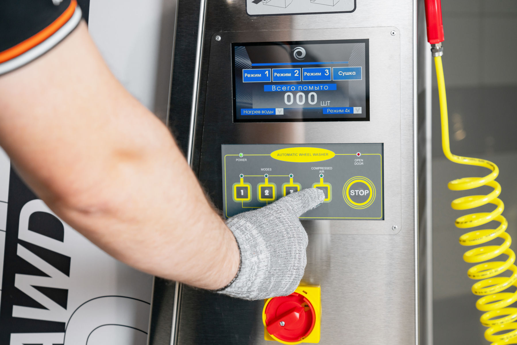 В зависимости от загрязнения колеса, оператор устанавливает длительность мойки и длительность обдува