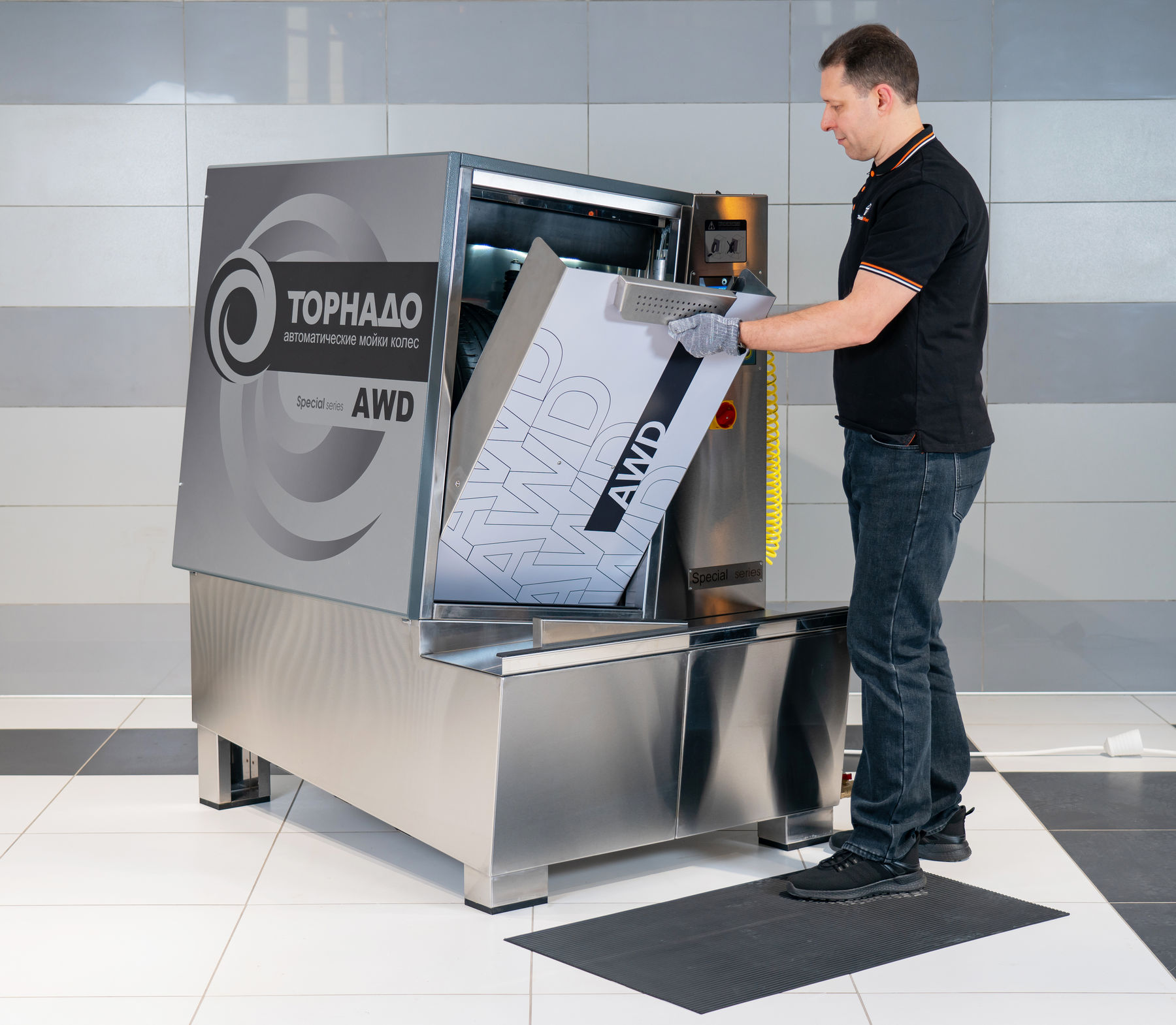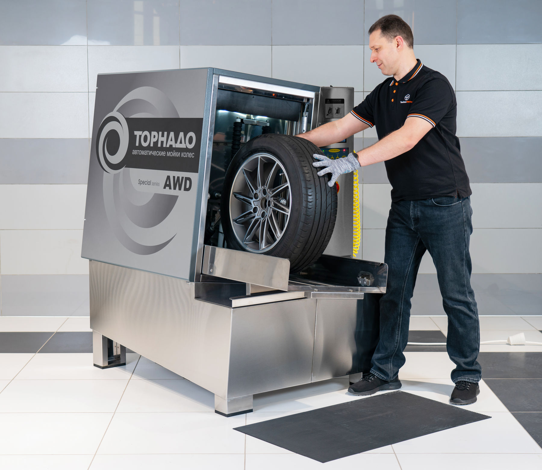 Автоматическая мойка колес "ТОРНАДО Deluxe" предназначена для очистки колес и покрышек автомобилей от загрязнений водой под давлением с пластиковыми гранулами.