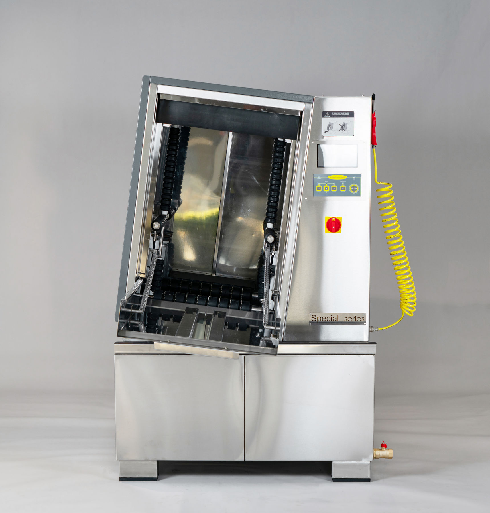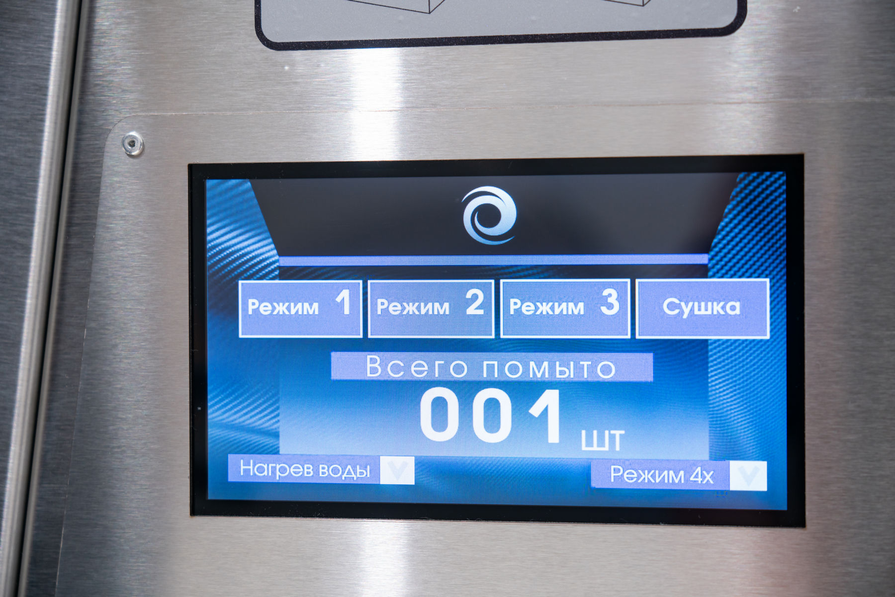 - Сенсорный дисплей премиум-класса: Точный контроль всех процессов мойки через интуитивно понятную сенсорную панель, заключенную в износостойкую рамку из нержавеющей стали