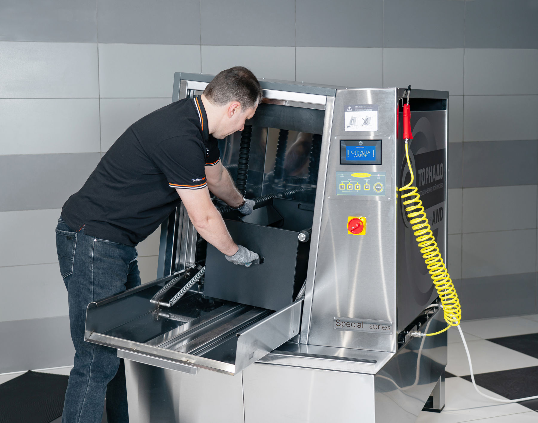 Автоматическая мойка колес "ТОРНАДО Deluxe (H)" предназначена для очистки колес и покрышек автомобилей от загрязнений водой под давлением с пластиковыми гранулами.