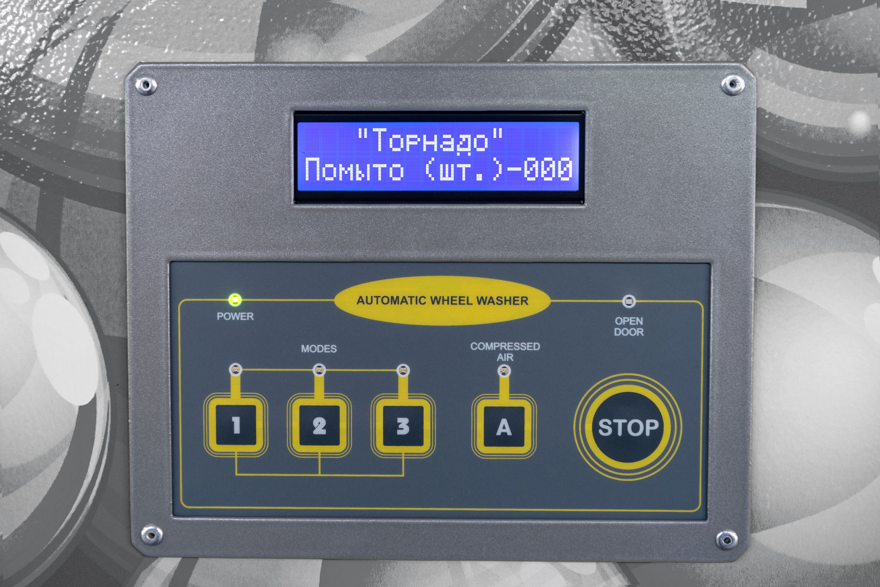 Так же на дисплее отображается количество вымытых колес, предупреждение о незакрытой двери моечной камеры, предупреждение о необходимости сменить воду, и другие сервисные сообщения.