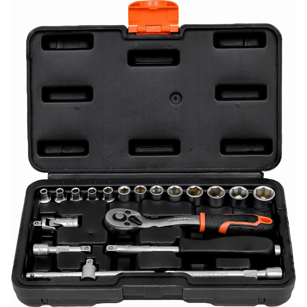 Набор 6-ти гранных головок с трещеткой 1/4" 19 пр. Gigant GAS19 предназначен для монтажа и демонтажа резьбовых и торцевых соединений. Рабочая часть инструментов изготовлена из хромванадиевой стали, которая обладает повышенной твердостью, благодаря процессу холодной ковки, которому она была подвергнута. Пластиковый кейс необходим для бережного и аккуратного хранения и транспортировки приспособлений.