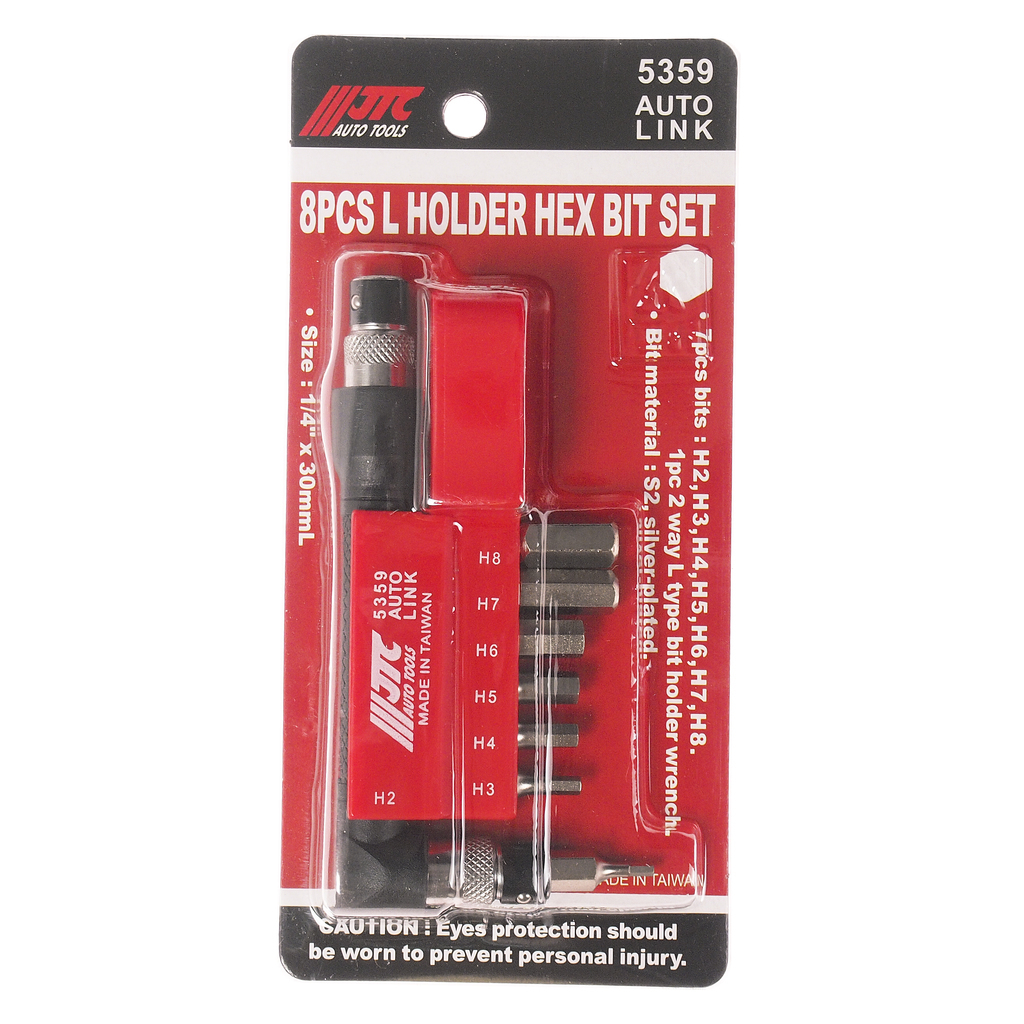 Набор Бит-вставок 1/4" DR H2, H3, H4, H5, H6, H7, H8 и Г-образным держателем 8 пр. JTC