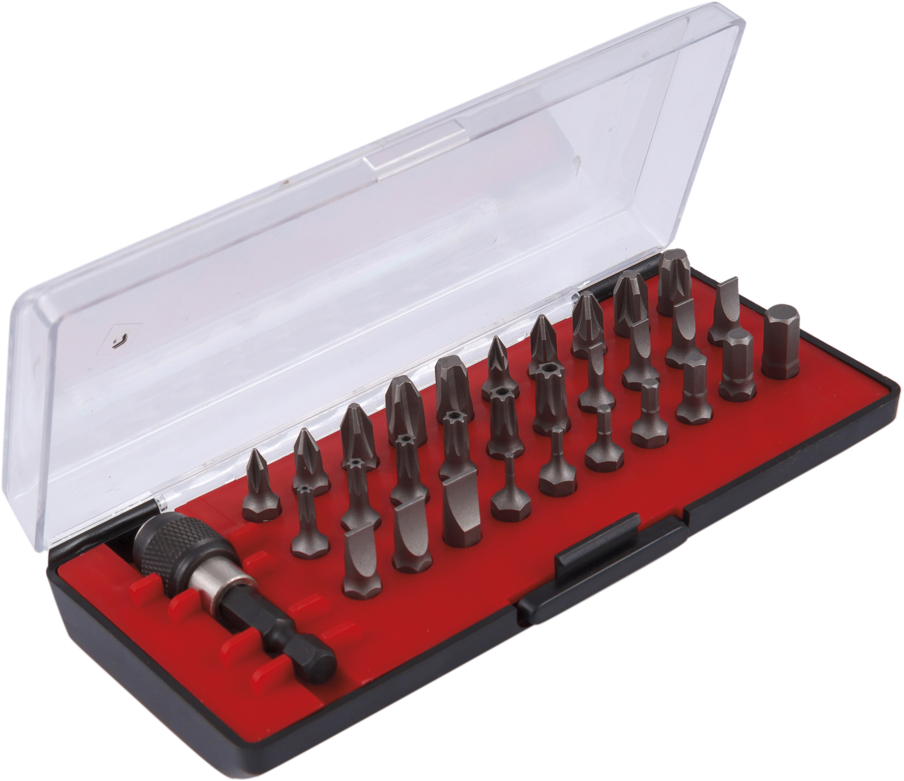 биты TORX с отверстием: Т10, Т15, Т20, Т25, Т27, Т30 биты Philips: 0, 1, 2, 3, 4 биты Pozidriv: 0, 1, 2, 3, 4 биты шестигранные (Hex): 1.5, 2, 2.5, 3, 4, 5, 6 биты шлицевые: 3, 4, 4.5, 5, 5.5, 6, 7 держатель для бит (битхолдер) для механизированного привода, магнитный 1/4"
