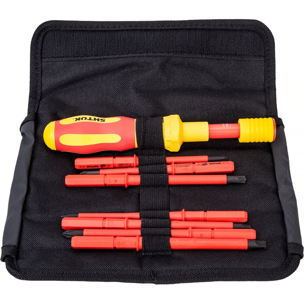 Набор диэлектрических отверток со сменными вставками 7+1, (в кофре, динамометрическая рукоятка 1-5 Нм) SHTOK 09350