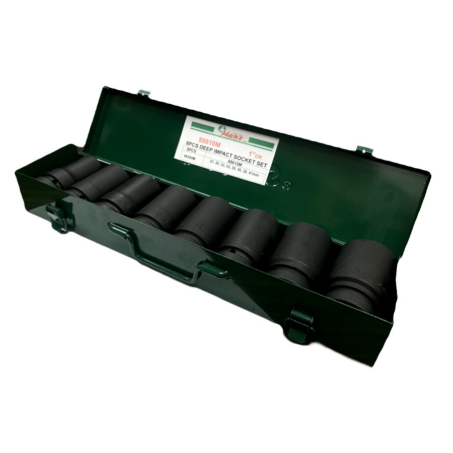 К ударным головкам предъявляются требования, которые резко отличаются от требований к обычным торцевым головкам. Ведь пневматический инструмент создает нагрузки совсем другого рода, а именно эти нагрузки носят ударный характер. Как следствие главным требованием к ударным головкам является, высокая ударостойкость. Именно этим обусловлено использование специального хром-молибденового сплава при их производстве. Также в качестве антикоррозионной обработки используется термохимическое покрытие — воронение или фосфатирование. Делается это по причине того что, хромникелевое покрытие при ударах может отслаивается. Ударные головки компании Hans изготовлены из высококачественных материалов и соответствуют всем требованиям стандартов ГОСТ и DIN Комплектация набора: Ударные головки: 27мм, 30мм, 32мм, 33мм,35мм,36мм,38мм,41мм. Металлический кейс.