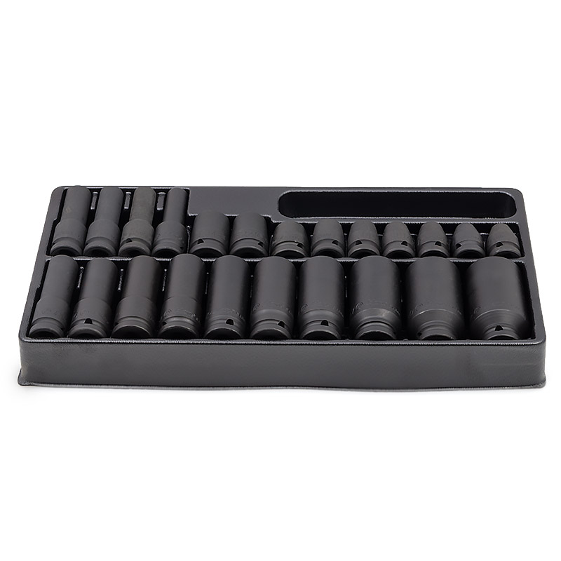 TT-60 Ложемент длинных ударных головок на 23 предмета 843000M Головка ударная длинная 1/2": 10, 11, 12, 13, 14, 16, 17, 19, 21, 22, 24, 27, 30, 32 мм 84410E Головка ударная E-STAR 1/2": E10, E11, E12, E14, E16, E18, E20, E22, E24 Размеры ложемента: 380х190х45 мм Наполнить свою тележку