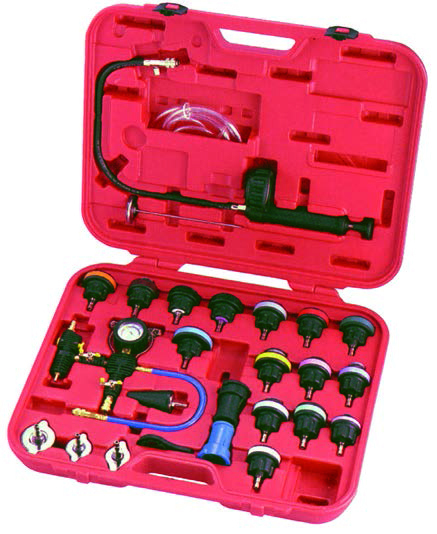 Набор для диагностики системы охлаждения легковых автомобилей из 26-ти предметов.
