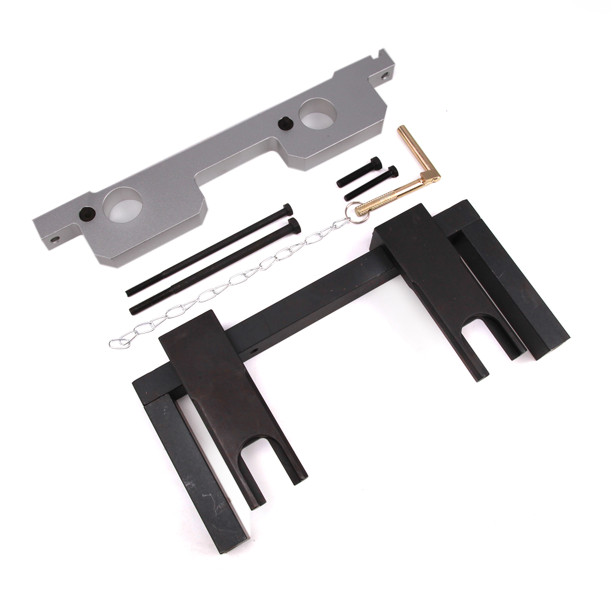 Набор приспособлений для моторов БМВ N51/N52 - Назначение приспособлений для БМВ – регулировка, проверка и установка фаз ГРМ - Применяемость набора для БМВ – двигателя N51/N52 - Сопоставления с оригинальными номерами инструментов БМВ: 114 280, 114 290, 110 300 Комплект поставки приспособлений для БМВ - Фиксатор распредвала BMW 114 280 - Регулировочный шаблон 114 290 - Фиксатор коленвала BMW 110 300 - Болты крепления