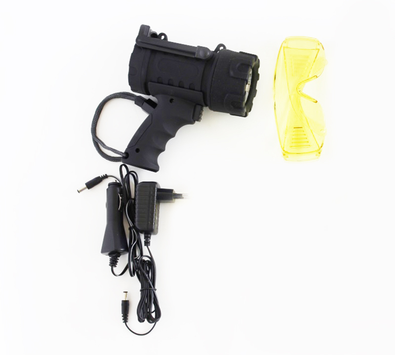 Набор течеискателя фреона R134a/HFO1234yf с беспроводной УФ-лампой с двухступенчатой регулировкой мощности лампы 50% и 100% для поиска утечек в автомобильных системах кондиционирования. Желтые очки защищают глаза оператора от ультрафиолетового спектра и позволяют легко обнаружить место утечки.