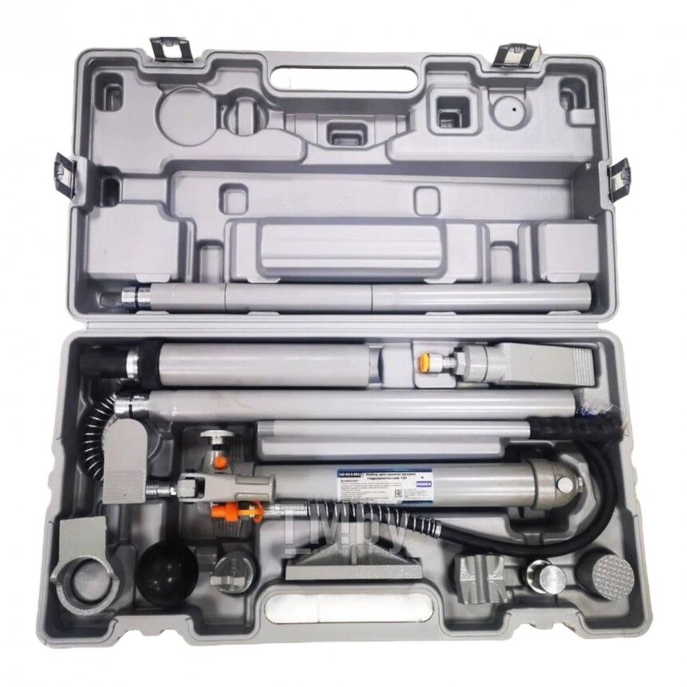 Набор для правки кузовов 10 т (набор гидравлики), Модель: Т03010 Комплект поставки: Пластиковый кейс на колесах. Гидравлический насос со шлангом, растяжка 10 т, 15 предметов Horex HZ 02.2.002J