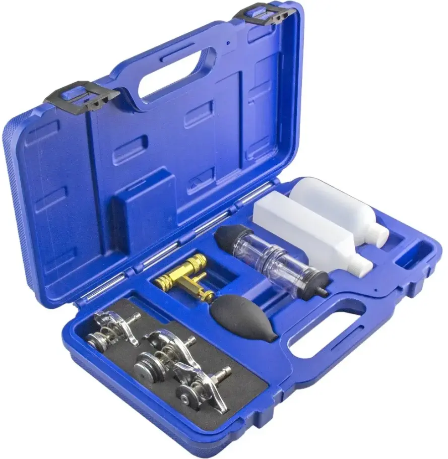 - Тестер утечек имеет коническую заглушку, которая может использоваться непосредственно на расширительном баке охлаждающей жидкости.