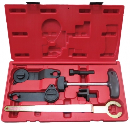 Набор для установки фаз ГРМ VAG — данный набор включает в себя все необходимые приспособления для выставления фаз газораспределения на двигателях серии EA211 FSI, TSI, TFSI и рабочим объемом 1.0л., 1.2л., 1.4л., 1.6л. Состав набора: Фиксатор коленчатого вала VAG T10340 —1 шт. Фиксатор распределительного вала VAG T10494 — 1 шт. Ключ для натяжного ролика VAG T10499 — 1 шт. Монтажное приспособление VAG T10487 — 1 шт. Фиксатор распределительного вала VAG T10476 — 1 шт. Фиксатор распределительного вала VAG T10477 — 1 шт.