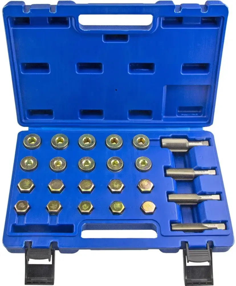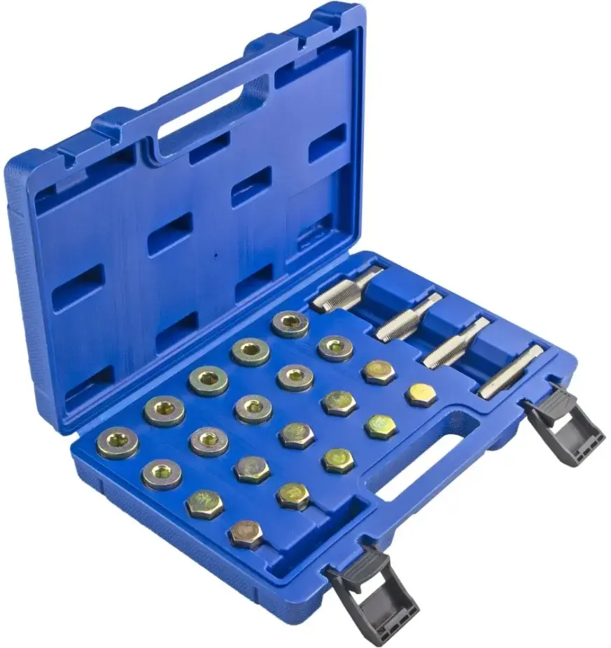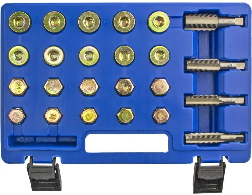 - Набор ZS-G050064 специально предназначен для восстановления резьбы маслосливных отверстий картера, коробки передач и дифференциала автомобиля в диапазоне от M13 до М20.