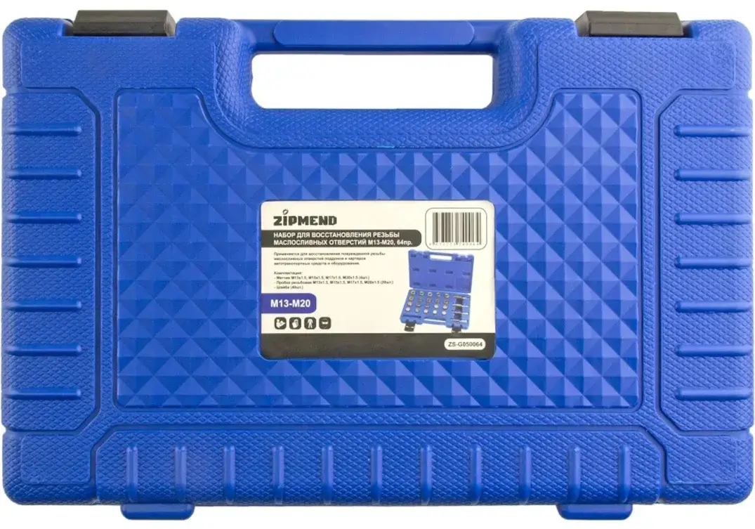 Набор для восстановления резьбы маслосливных отверстий, М13-М20, 64 предмета., ZIPMEND, ZS-G050064.