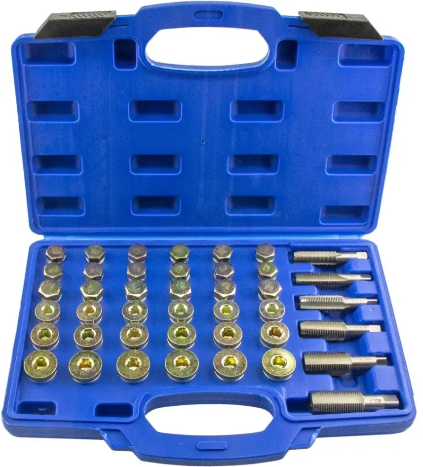 - Используется в случае повреждения или срыва резьбы во время замены масла в двигателе, и т.п.