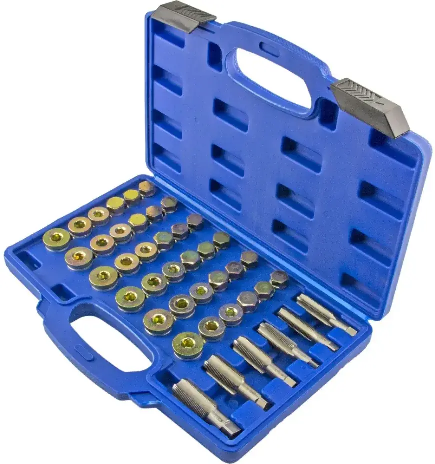 - Набор ZS-G050114 специально предназначен для восстановления резьбы маслосливных отверстий картера, коробки передач и дифференциала автомобиля в диапазоне от M13 до М22.