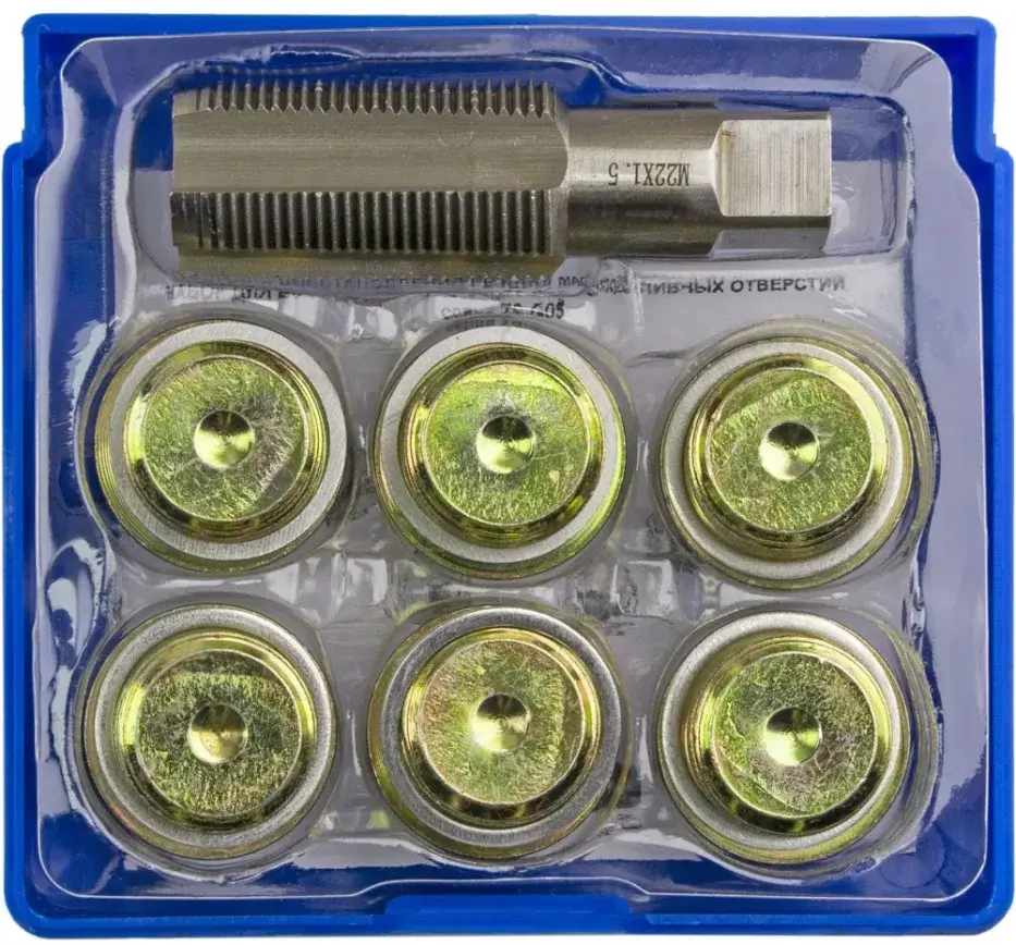- Набор ZS-G052215 специально предназначен для восстановления резьбы M22 x 1,5 маслосливных отверстий картера, коробки передач и дифференциала автомобиля.