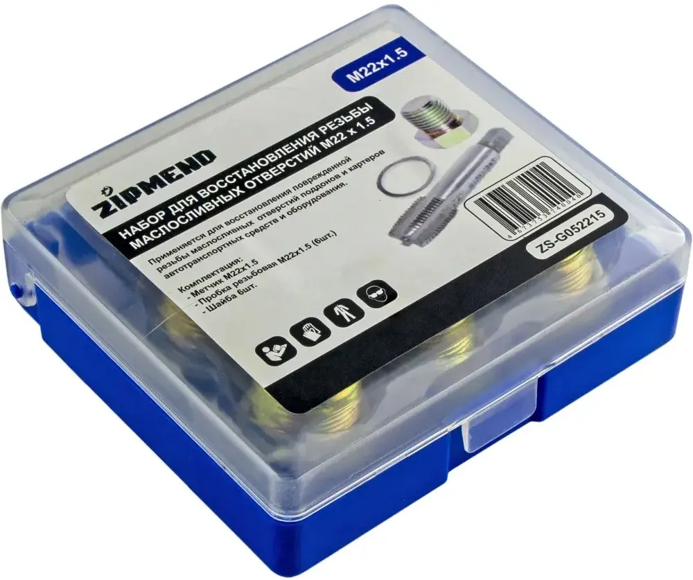 Набор для восстановления резьбы маслосливных отверстий M22 x 1,5мм., ZIPMEND, ZS-G052215.