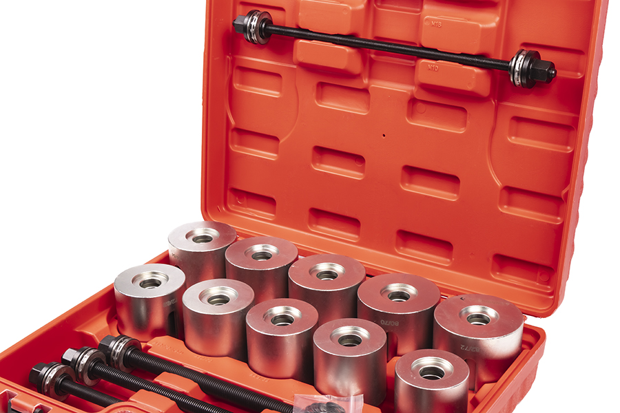 body{margin:0;padding:8px;} p{line-height:1.15;margin:0;white-space:pre-wrap;} ol,ul{margin-top:0;margin-bottom:0;} img{border:none;} li>p{display:inline;} table.blueTable {width: 100%; text-align: center; border-collapse: collapse;} table.blueTable td, table.blueTable th {border: 0px solid #AAAAAA; padding: 1px 1px;} table.blueTable tbody td { font-size: 13px;} table.blueTable thead {background: #EEEEEE;background: -moz-linear-gradient(top, #EEEEEE 0%, #cecece 66%, #EEEEEE 100%);background: -webkit-linear-gradient(top, #EEEEEE 0%, #cecece 66%, #C9C9C9 100%); background: linear-gradient(to bottom, #EEEEEE 0%, #EEEEEE 66%, #EEEEEE 100%);} table.blueTable thead th { font-size: 12px;font-weight: normal;color: #000000; text-align: center;border-left: 1px solid #EEEEEE;} table.blueTable thead th:first-child { border-left: none;} table.blueTable tfoot td {font-size: 12px;} table.blueTable2 {background-color: #FFFFFF; width: 100%;text-align: left;border-collapse: collapse;} table.blueTable2 td, table.blueTable th { border: 0px solid #AAAAAA;padding: 3px 2px;} table.blueTable2 tbody td {font-size: 13px;} table.blueTable2 tr:nth-child(odd) { background: #EEEEEE;} table.blueTable2 tfoot td { font-size: 14px;} table.blueTable2 tfoot .links { text-align: right;} table.blueTable2 tfoot .links a{display: inline-block;background: #1C6EA4;color: #FFFFFF;padding: 2px 8px;border-radius: 5px;} Назначение: Применяется для снятия и установки подшипников, сайлентблоков и других деталей, имеющих посадку в натяг. Данный набор является полностью универсальным и может применяться как при ремонте легкового, так и грузового транспорта. Особенности: Материал оправок: Сталь 40 Материал силовых шпилек: Закаленная инструментальная сталь. Опорные винты снабжены подшипниками. Поставляется в удобном кейсе, благодаря чему прост при транспортировке и хранении. Состав: Оправки. Внутренний диаметр 34,36,38,40,42,44,46,48,50,52,54,56,58,60,62,64,66,68, 70,72 мм Оправки. Внешний диаметр 44,46,48,50,52,54,56,58,60,62,64,66, 68,70,72,74,76,78,80,82 мм Силовые винты M10, M12, M14, M16 Размер: Длина, мм 430 Ширина, мм 365 Вес, кг 15,3 ВНИМАНИЕ! Если элемент не поддается выпрессовке, следует: прекратить работу, разобрать инструмент, обработать поверхность выпрессовочного элемента проникающей смазкой, типа WD-40. После этого следует повторить процедуру демонтажа. Во время работы используйте большое количество смазки для предотвращения деформации направляющей шпильки. Во время работы запрещено использовать ударный инструмент.