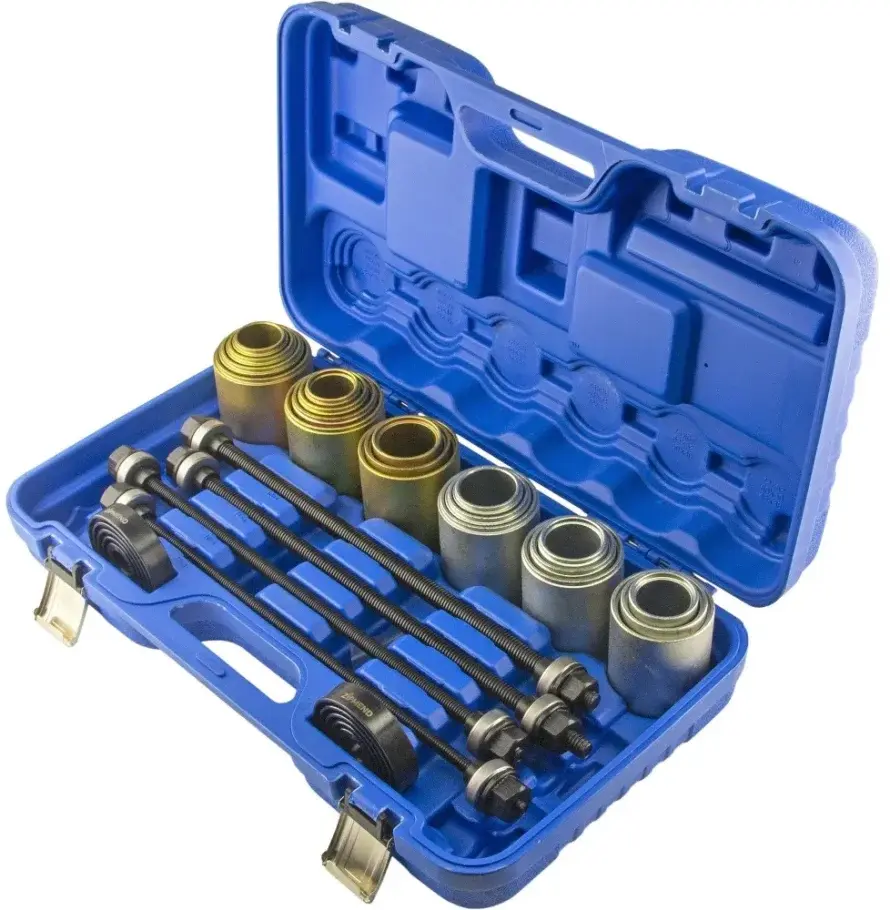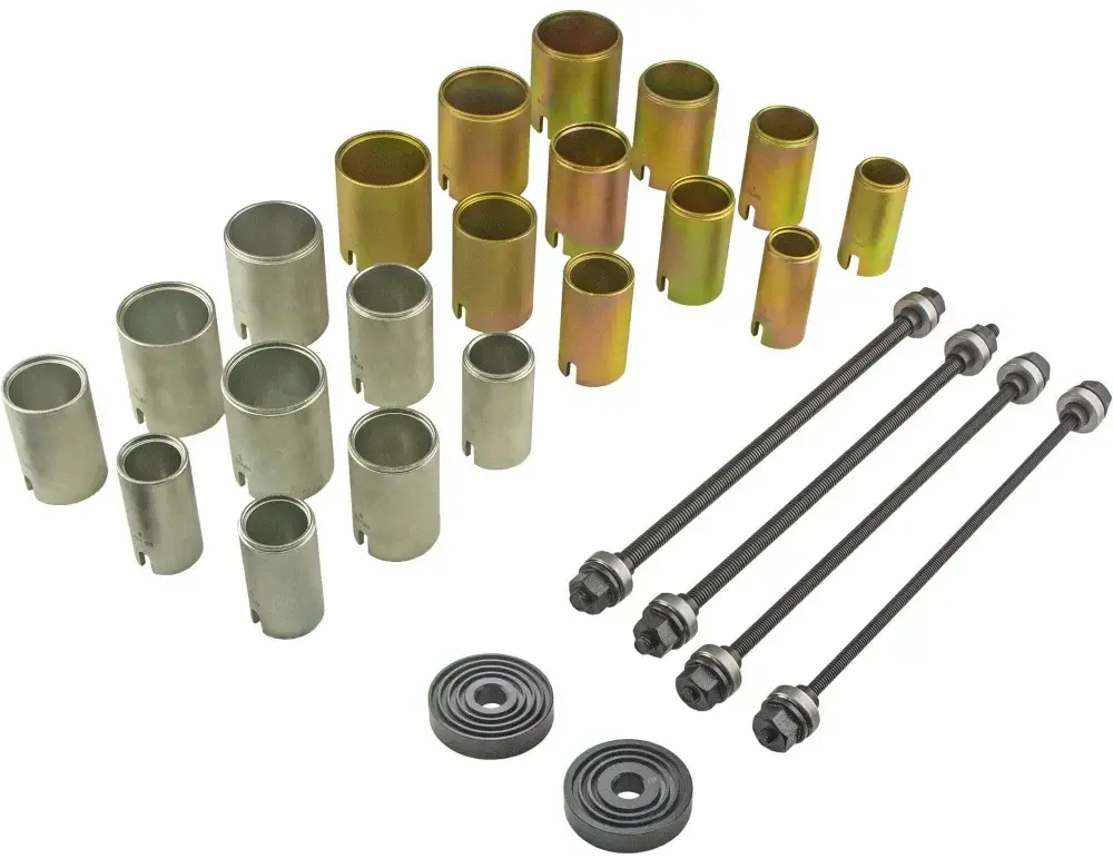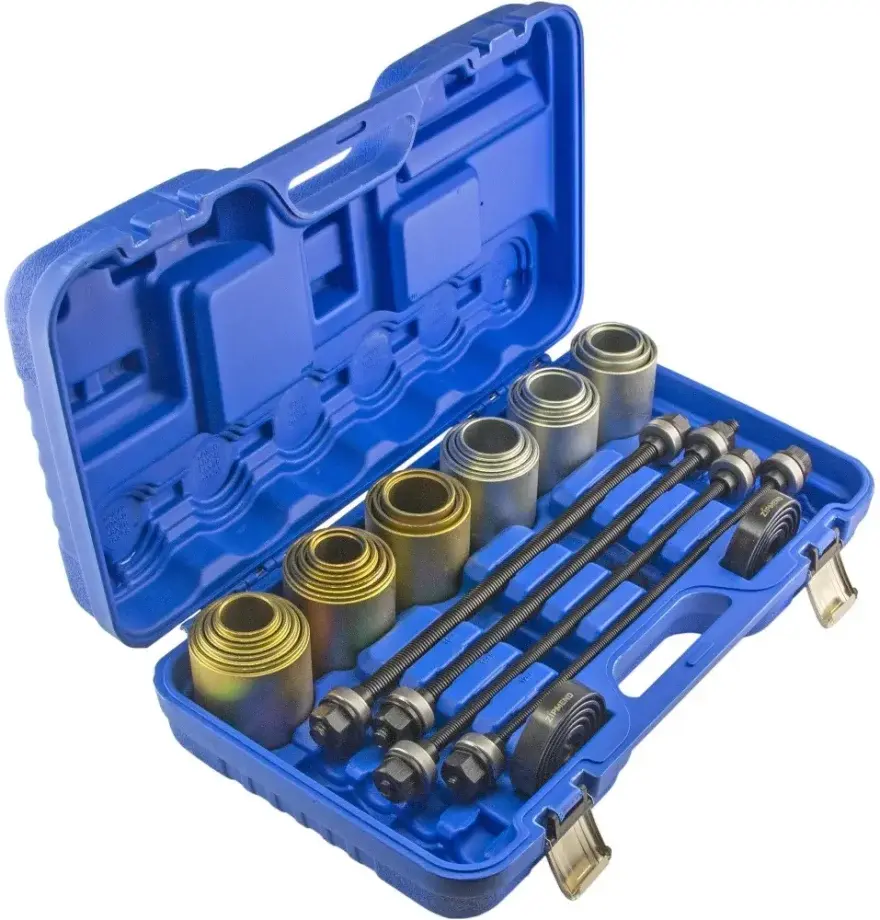 - Набор приспособлений ZS-A021001 специально предназначен для монтажа и демонтажа сайлентблоков, подшипников, втулок.