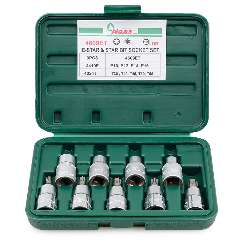 4609ET комплект E-Star и Star на 1/2' 9 предметов (E10, E12, E14, E16, T30, T40, T45, T50, T55)