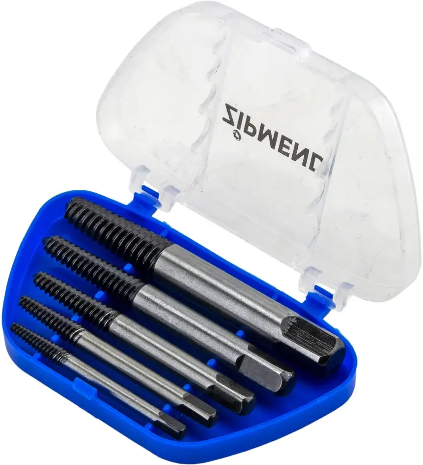 - Набор экстракторов ZS-H030002 применяется для выкручивания сломанных винтов и шпилек из резьбовых отверстий без повреждений – спасение дорогостоящих изделий.