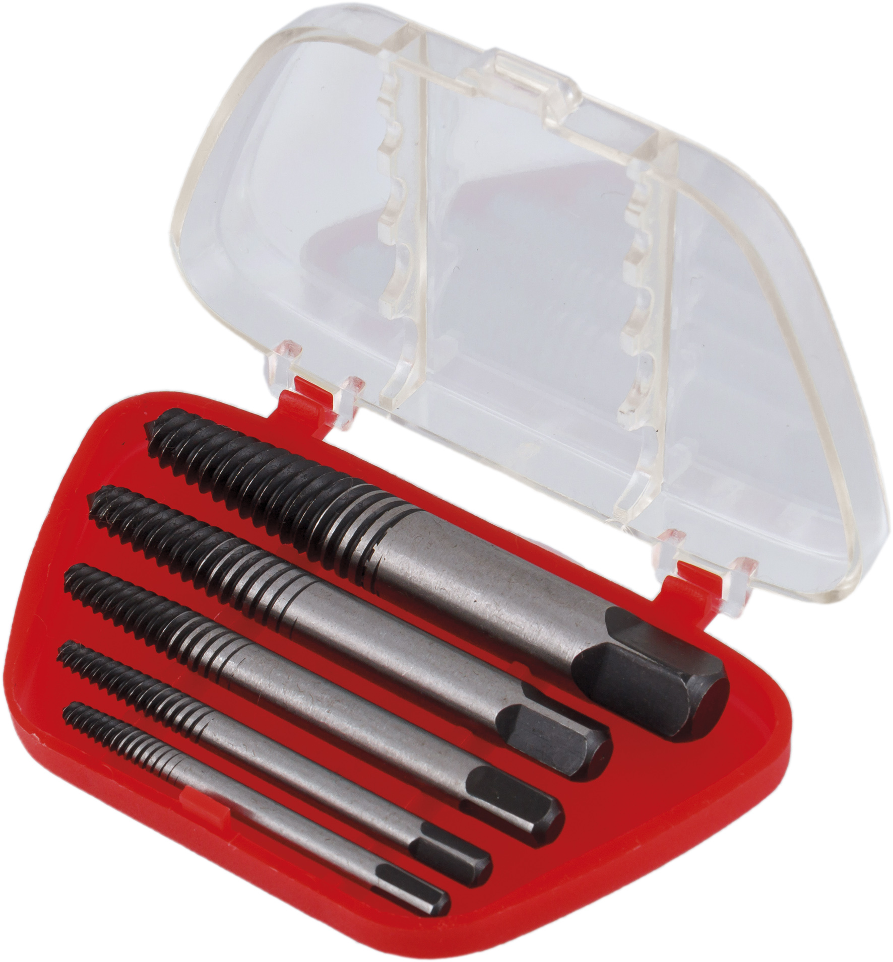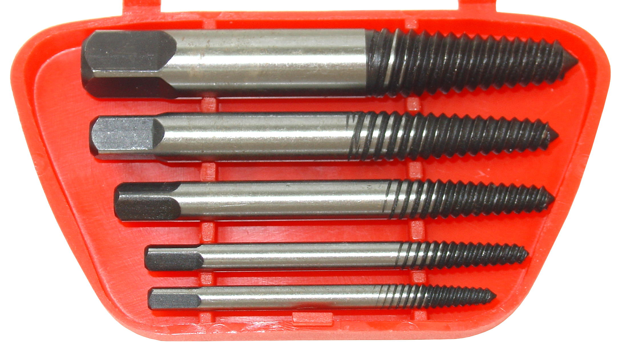 KA-8008 Набор шпильковертов (экстракторов). Используется для выкручивания обломанных шпилек, болтов, винтов и т.д.. Принцип работы: Просверлите в центре шпильки продольное отверстье подходящего диаметра. Установите экстрактор в отверстие. Вращая экстрактор против часовой стрелки, удалите повреждённую шпильку. Особенности: Подходит для удаления поврежденного крепежа (шпильки, болты, винты и т.д.). Используется, когда крепёж обломан заподлицо с деталью, и нет возможности применить эксцентриковый шпильковёрт. Изготовлены из высокопрочного металла. Комплект набора: Экстрактор для шпилек М3-М6 (1/8"-1/4") - 1 шт. Экстрактор для шпилек М6-М8 (1/4"-5/16") - 1 шт. Экстрактор для шпилек М8-М11 (5/16"-7/16") - 1 шт. Экстрактор для шпилек М11-М14 (7/16"-9/16") - 1 шт. Экстрактор для шпилек М14-М18 (9/16"-3/4") - 1 шт. Пластиковый контейнер для хранения - 1 шт. Блистерная упаковка - 1 шт. НЕ ДОПУСКАЕТСЯ использовать пневматический и электрический инструмент в качестве привода! Обязательно используйте защитные очки. Использование набора допускается только квалифицированным персоналом с соблюдением техники безопасности!