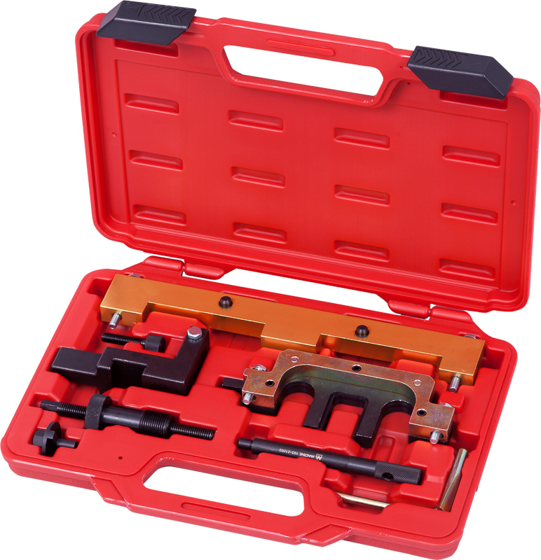 Набор фиксаторов распредвала / коленвала, BMW, кейс, 8 предметов МАСТАК 103-21203C. Используется для фиксации маховика коленвала в положении ВМТ на двигателях BMW: N42, N46, N46T, N62, N62TU, N73.