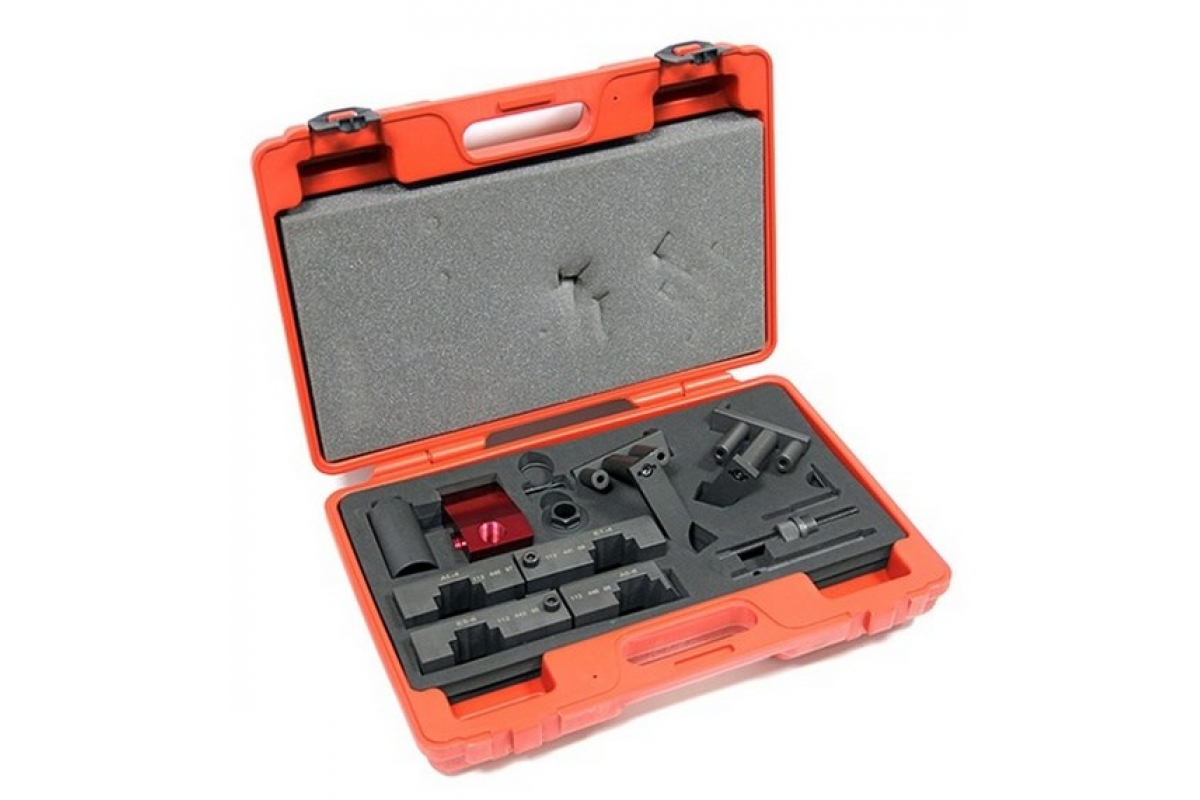 Набор фиксаторов цепи распредвала BMW 13 предметов МАСТАК 103-21223C включает в себя необходимое оборудование для работы с цепью распредвала. Инструменты применяются для двигателей M60/M62. Каждый элемент набора выполнен из инструментальной стали, имеет оксидированное покрытие. Набор поставляется в пластиковом кейсе.