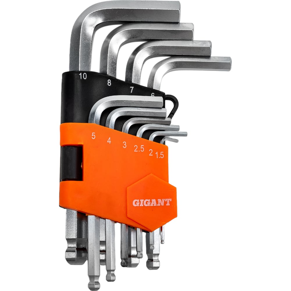 Набор г-образных шестигранных шаровых ключей 10 шт Gigant, размеры 1,5-10мм, grf-122