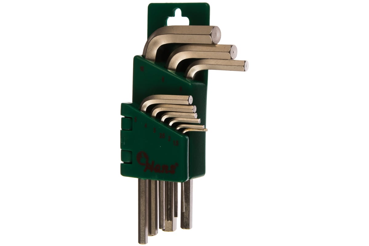 Набор Г-образных шестигранников Hans 1.5-10мм, 9шт. 16764-29M используются при монтажных работах для отворачивания и заворачивания резьбового крепежа, имеющего внутренний шестигранный профиль. Благодаря применению при изготовлении хромованадиевой стали, устойчивой к деформации и коррозии, инструменты имеют длительный срок эксплуатации. Пластиковый держатель обеспечивает удобство хранения и транспортировки.