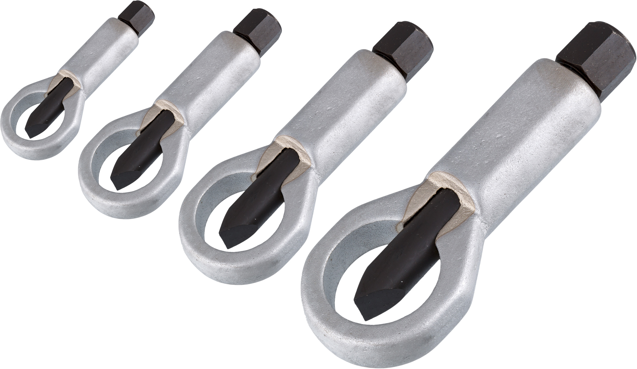 KA-8001 Набор гайкорезов механических. Используется для удаления гаек путём их разрушения. Принцип работы: Оденьте на «прикипевшую» гайку гайкорез, подходящий по размеру. Вращайте по часовой стрелке шестигранник на торце гайкореза, пока жало не войдёт в тело гайки. Повторите предыдущую процедуру для противоположной стороны гайки. Удалите разрезанную гайку. Особенности: Подходит для удаления поврежденных или «прикипевших» гаек, которые невозможно открутить гаечным ключом или торцевой головкой. Изготовлены из высокопрочного металла. Комплект набора: Гайкорез для гаек 9 мм – 12 мм - 1 шт. Гайкорез для гаек 12 мм – 16 мм - 1 шт. Гайкорез для гаек 16 мм – 22 мм - 1 шт. Гайкорез для гаек 22 мм – 17 мм - 1 шт. Блистерная упаковка - 1 шт. НЕ ДОПУСКАЕТСЯ использовать пневматический и электрический инструмент в качестве привода! Обязательно используйте защитные очки. Использование набора допускается только квалифицированным персоналом с соблюдением техники безопасности!