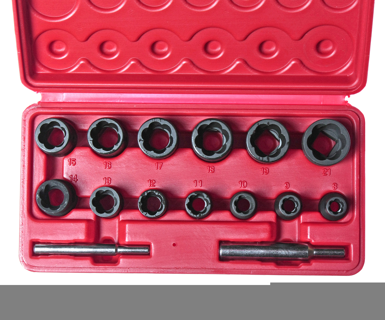 В комплект входят наиболее востребованные типоразмеры головок.