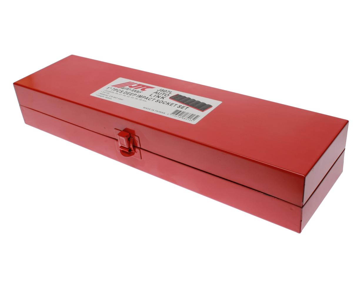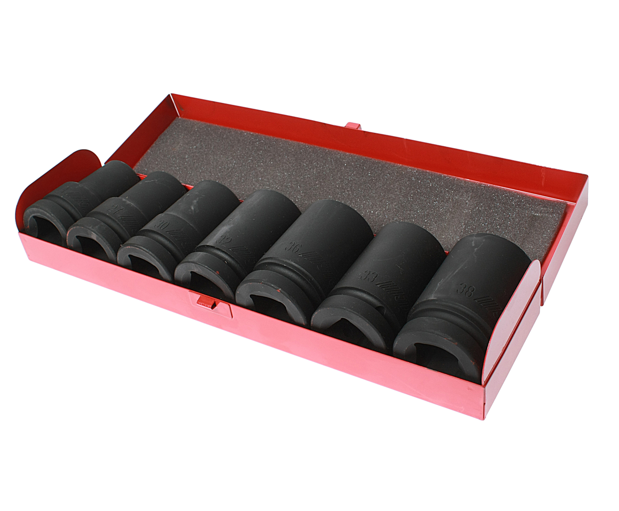 Набор глубоких ударных торцевых головок в металлическом кейсе.