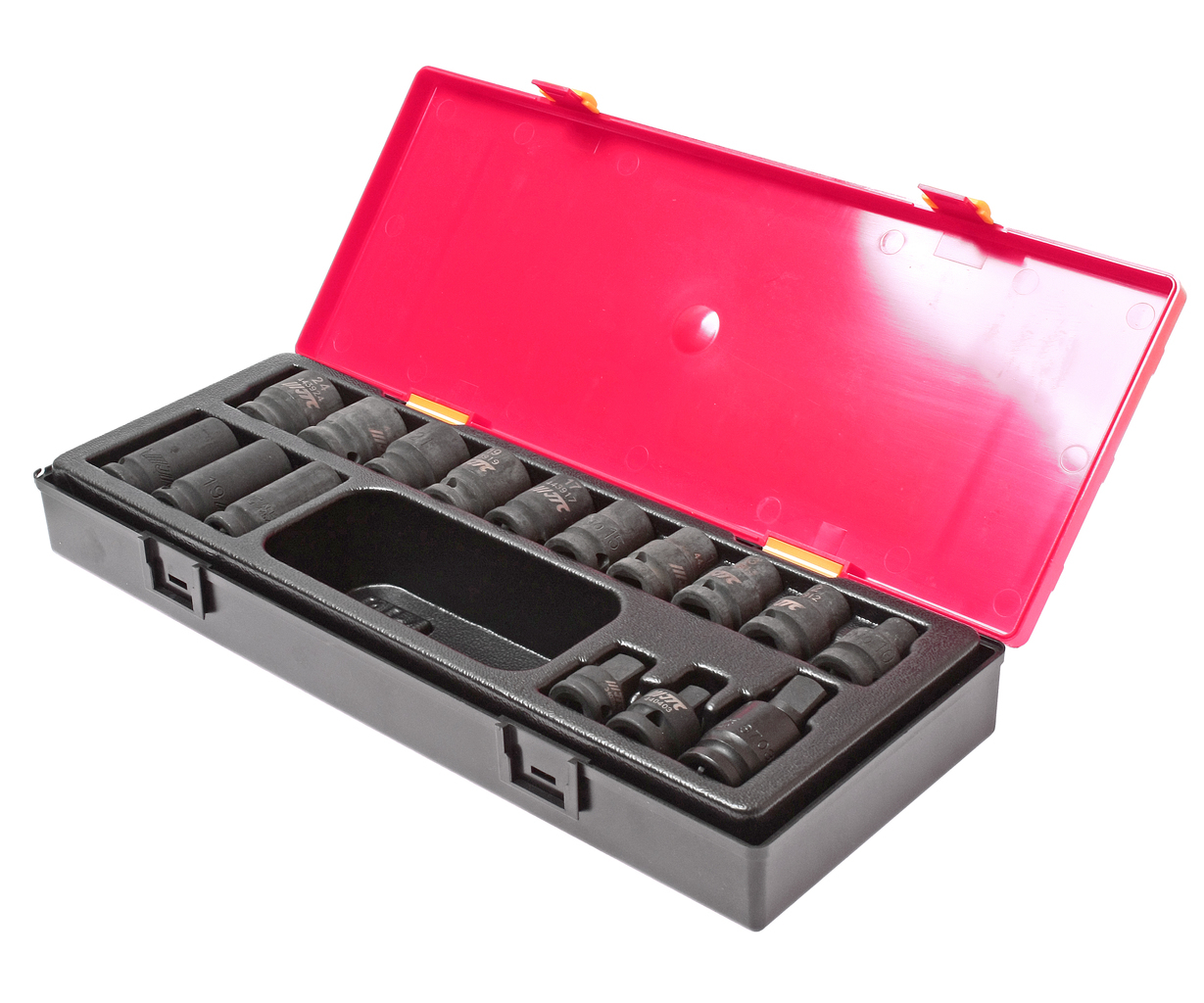 Артикулы JTC-443910-24: головки ударные 12 граней 1/2": 10 мм., 12 мм., 13 мм., 14 мм., 15 мм., 17 мм., 19 мм., 21 мм., 22 мм., 24 мм. - 10 шт.